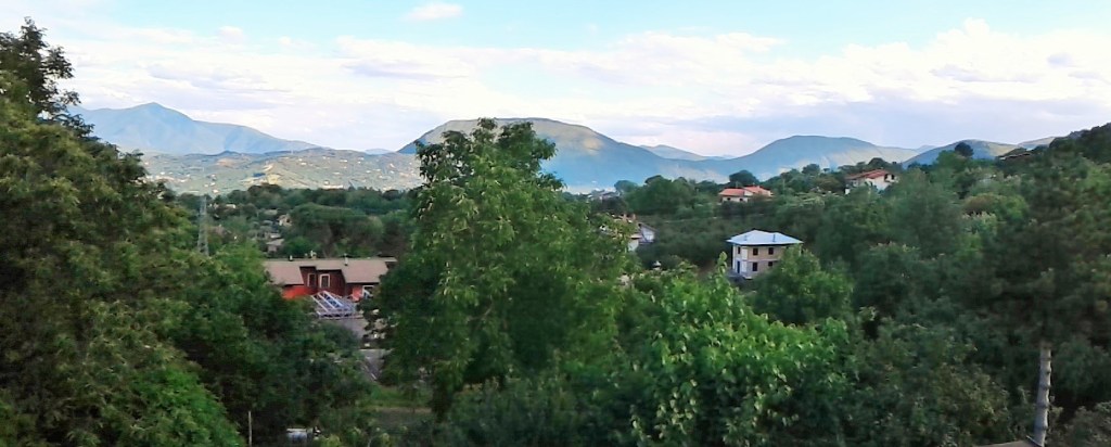 Despite these changes, I feel like I belong when I am on my mother’s land and in her house. I like to stroll under the walnut and hazelnut trees, seeing rabbits running to hide. From the balcony in my mother’s bedroom, I can see over the terracotta rooftops, above the trees and vegetable patches, miles out towards the blue and green mountains. There were much fewer houses and many more fruit and nut trees as recently as 25 years ago. 25 years? Good grief, my life is slipping away.